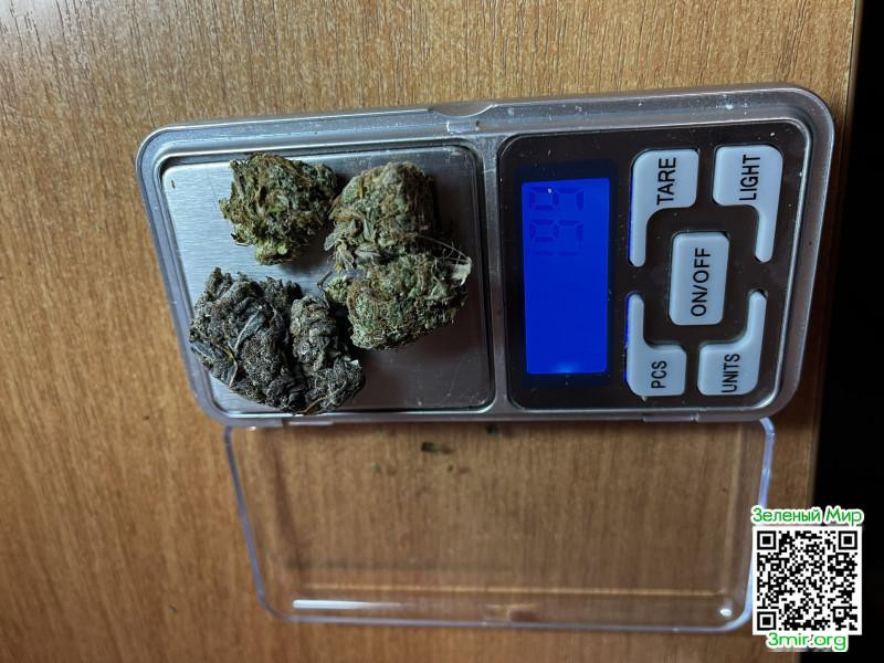 Плотная, собранная, с насыщенным зелёным цветом. Смолистость сразу заметна, поверхность «живая». Есть редкие оранжевые волоски, которые добавляют контраст.